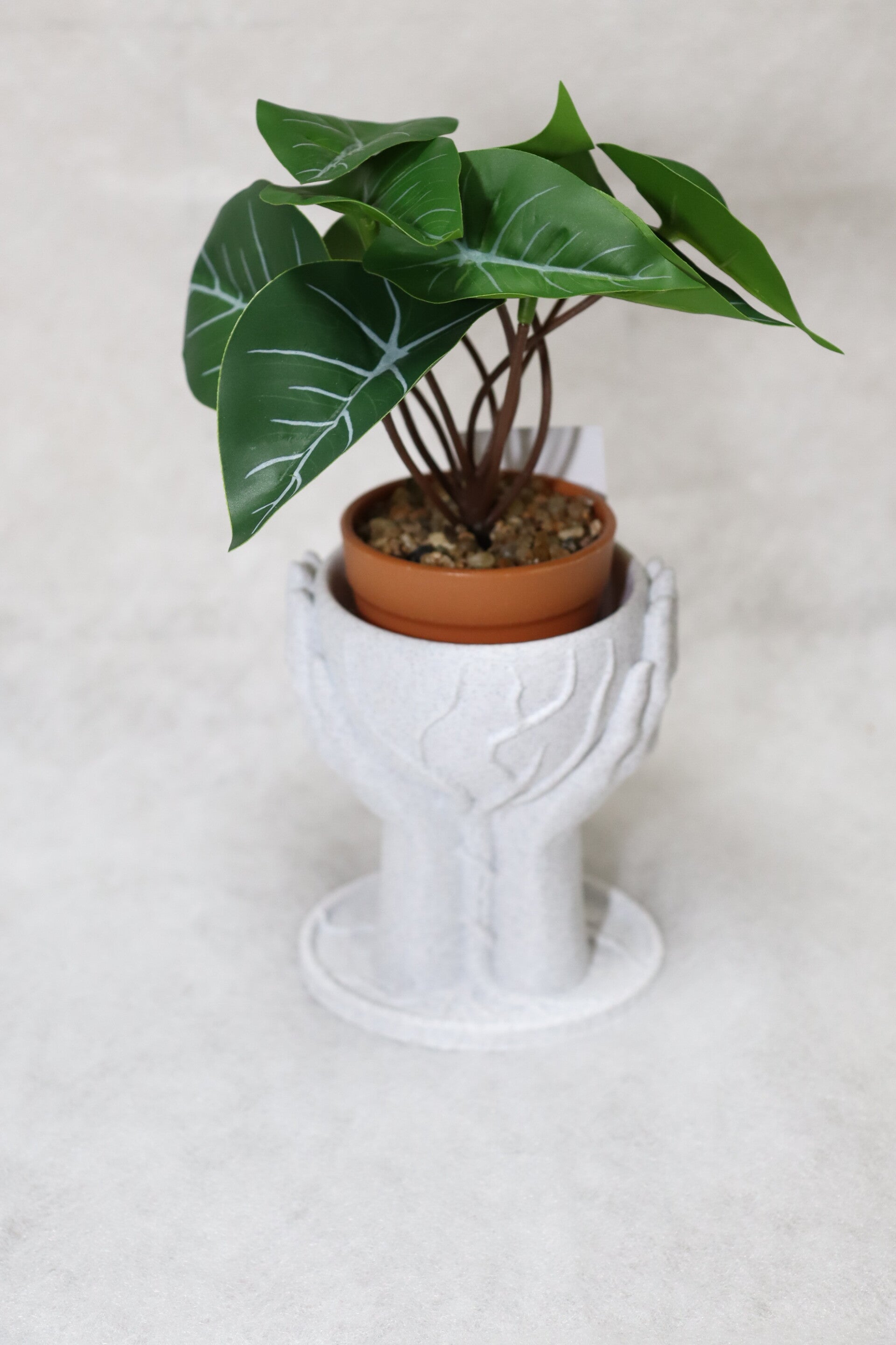 Potje uitgevoerd in het milieuvriendelijk PLA. Kleur is licht gemarmerd wit.