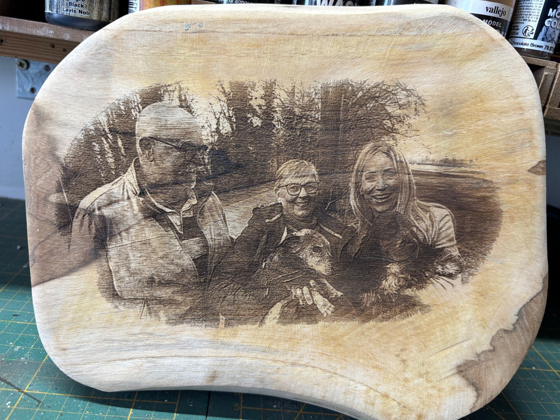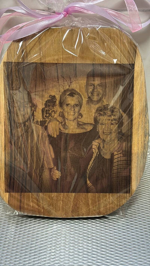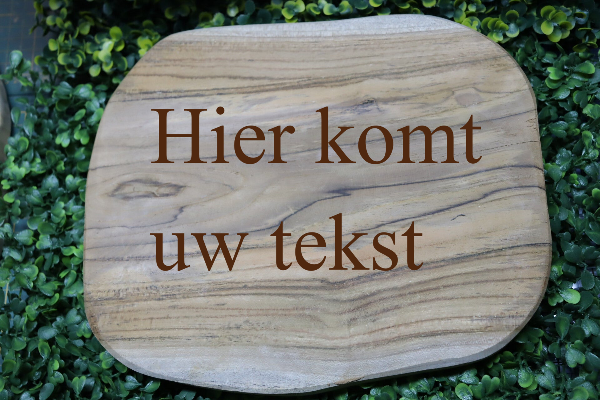 Teak houten schijf met uw eigen afbeelding (foto) en/of tekst.