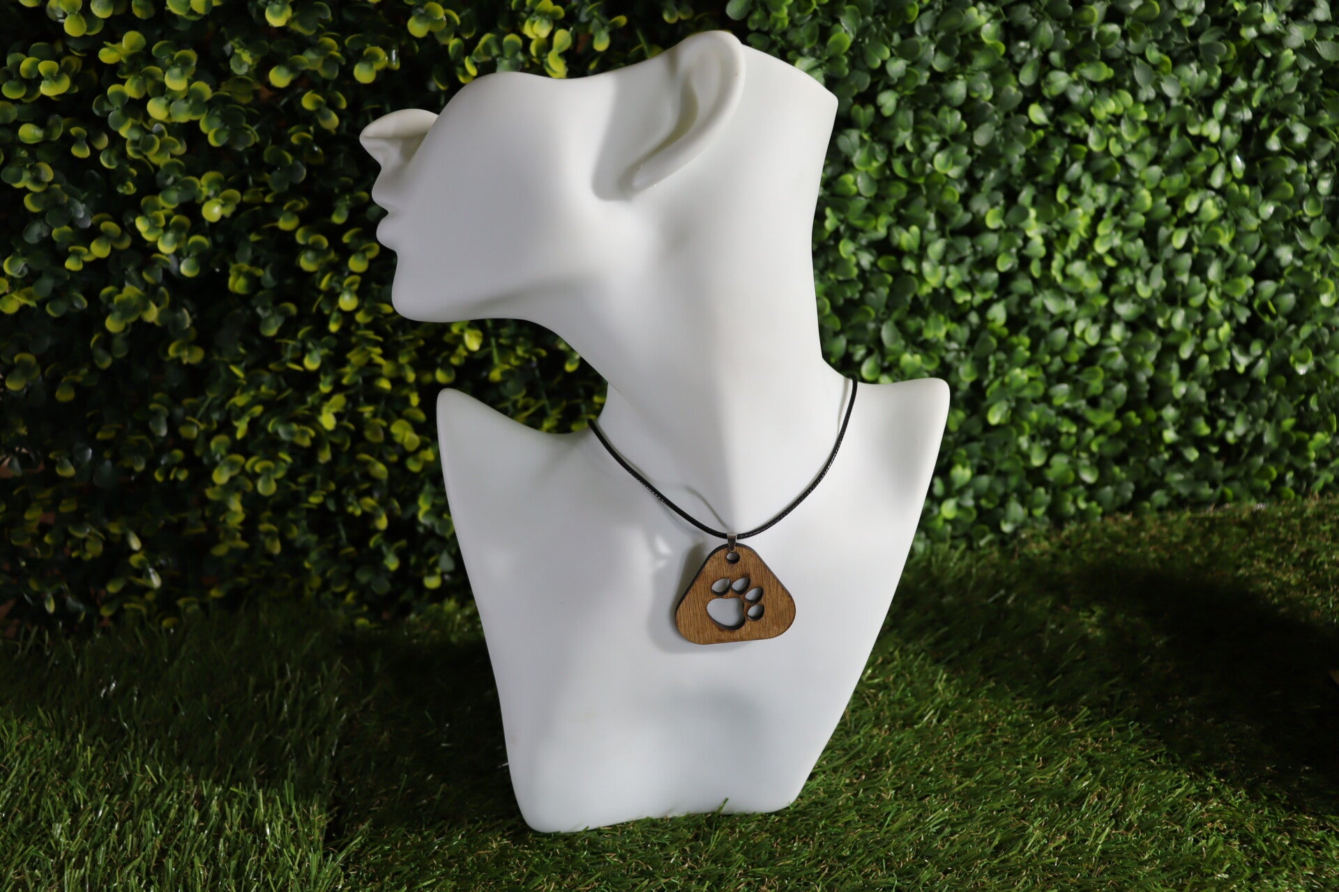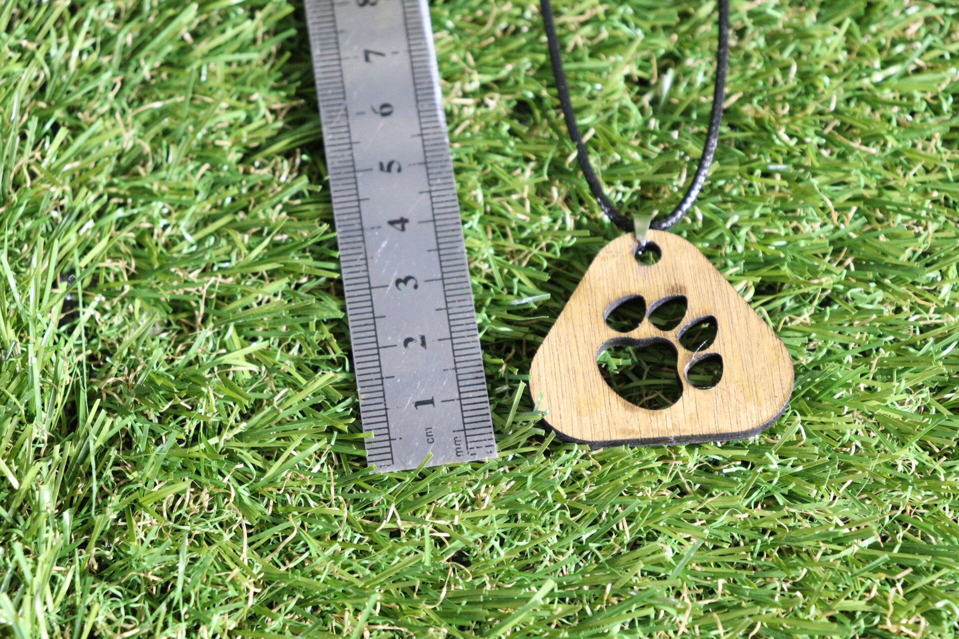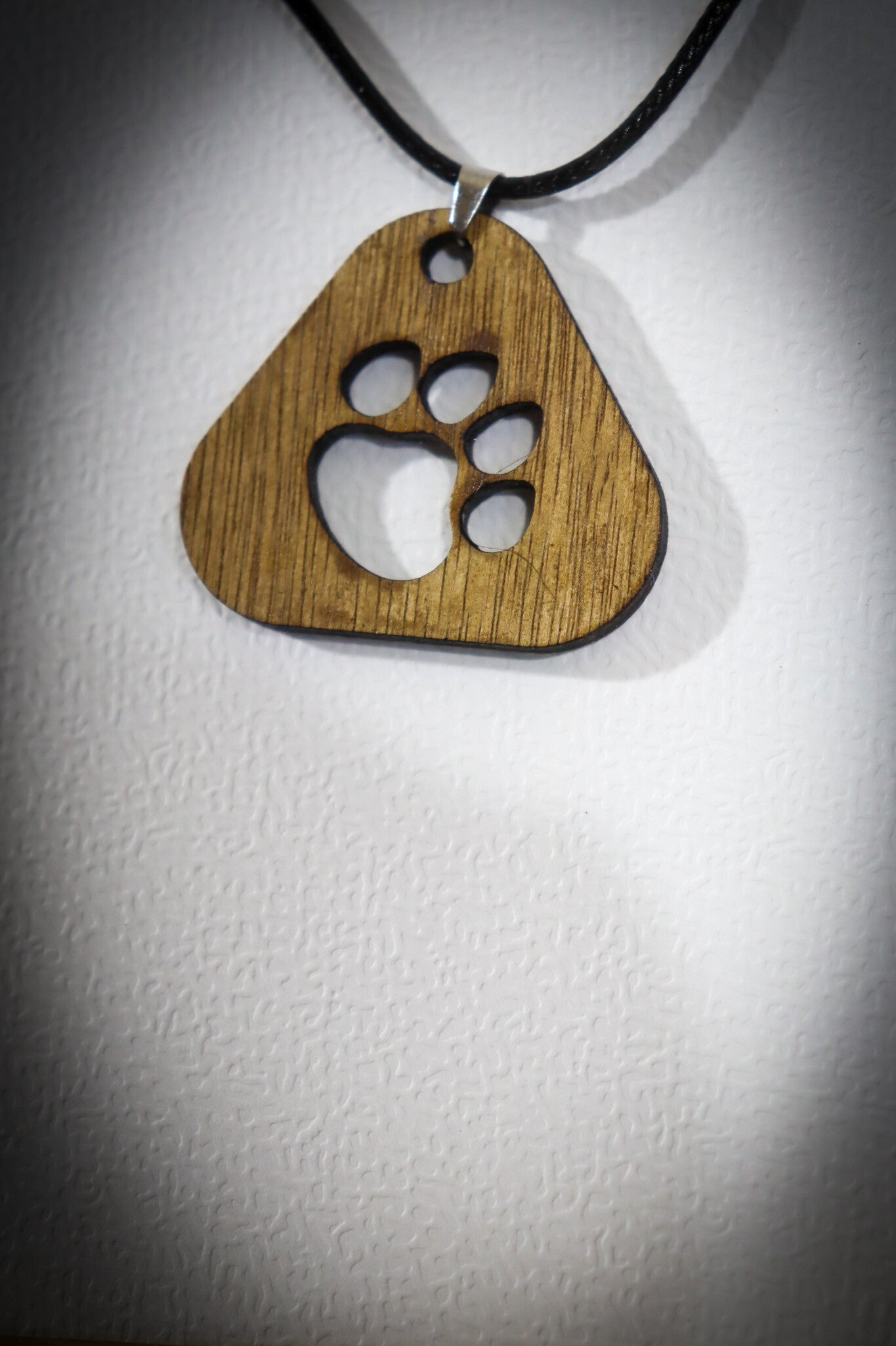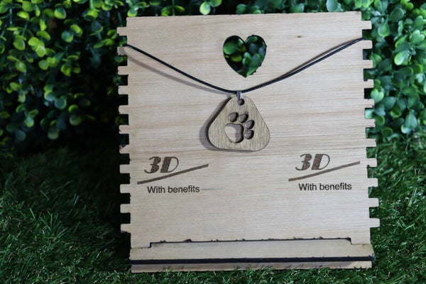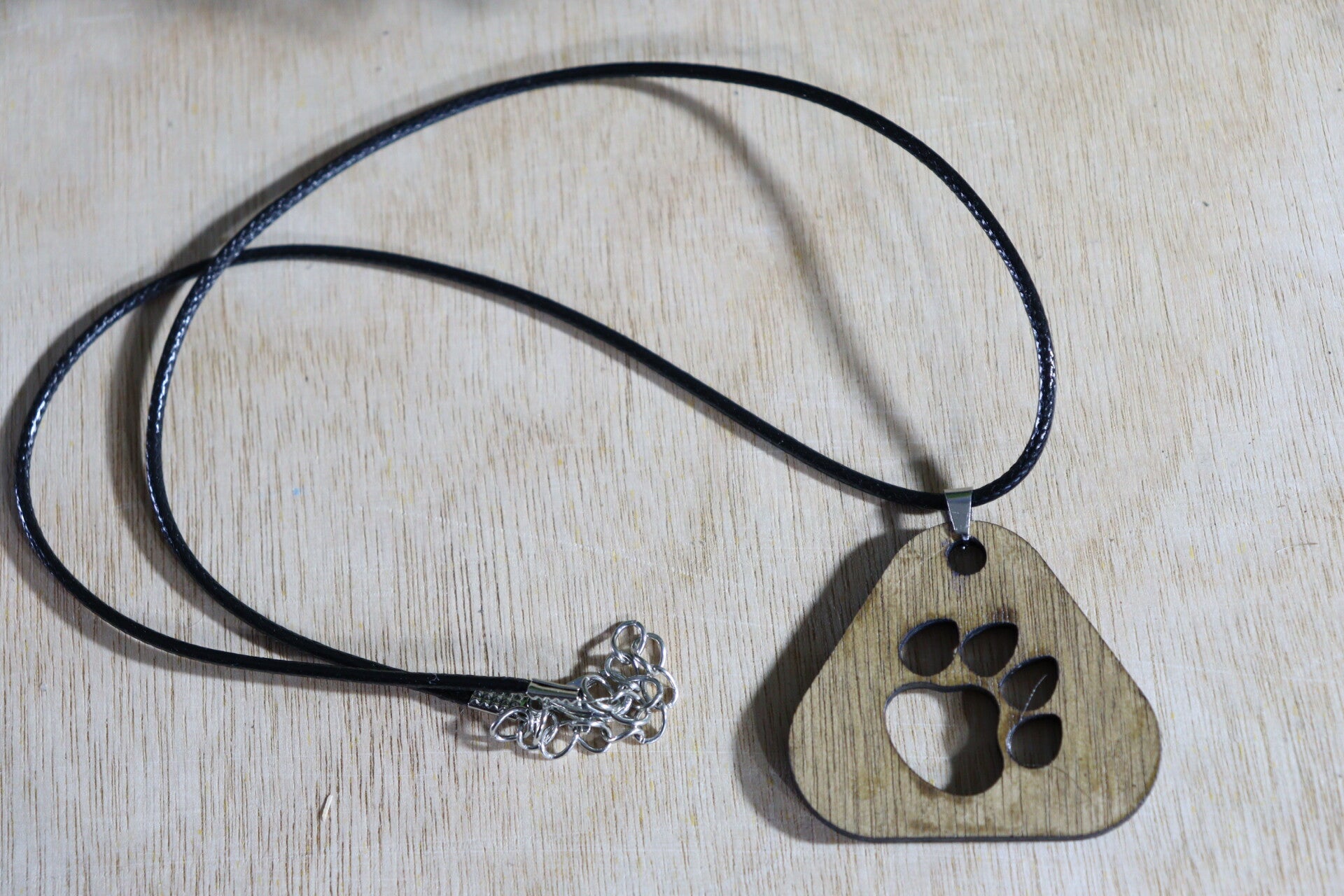 Halsketting met hondenpoot, lasergesneden houten hanger.
