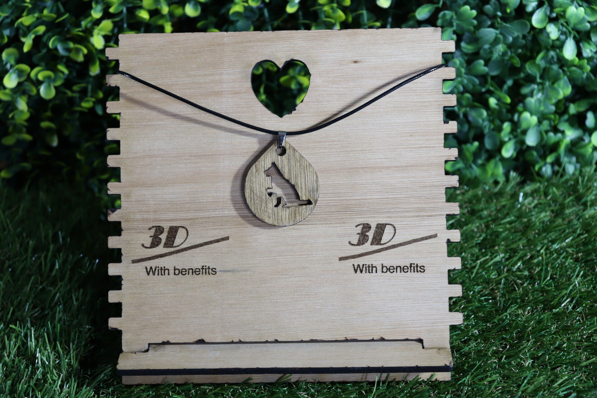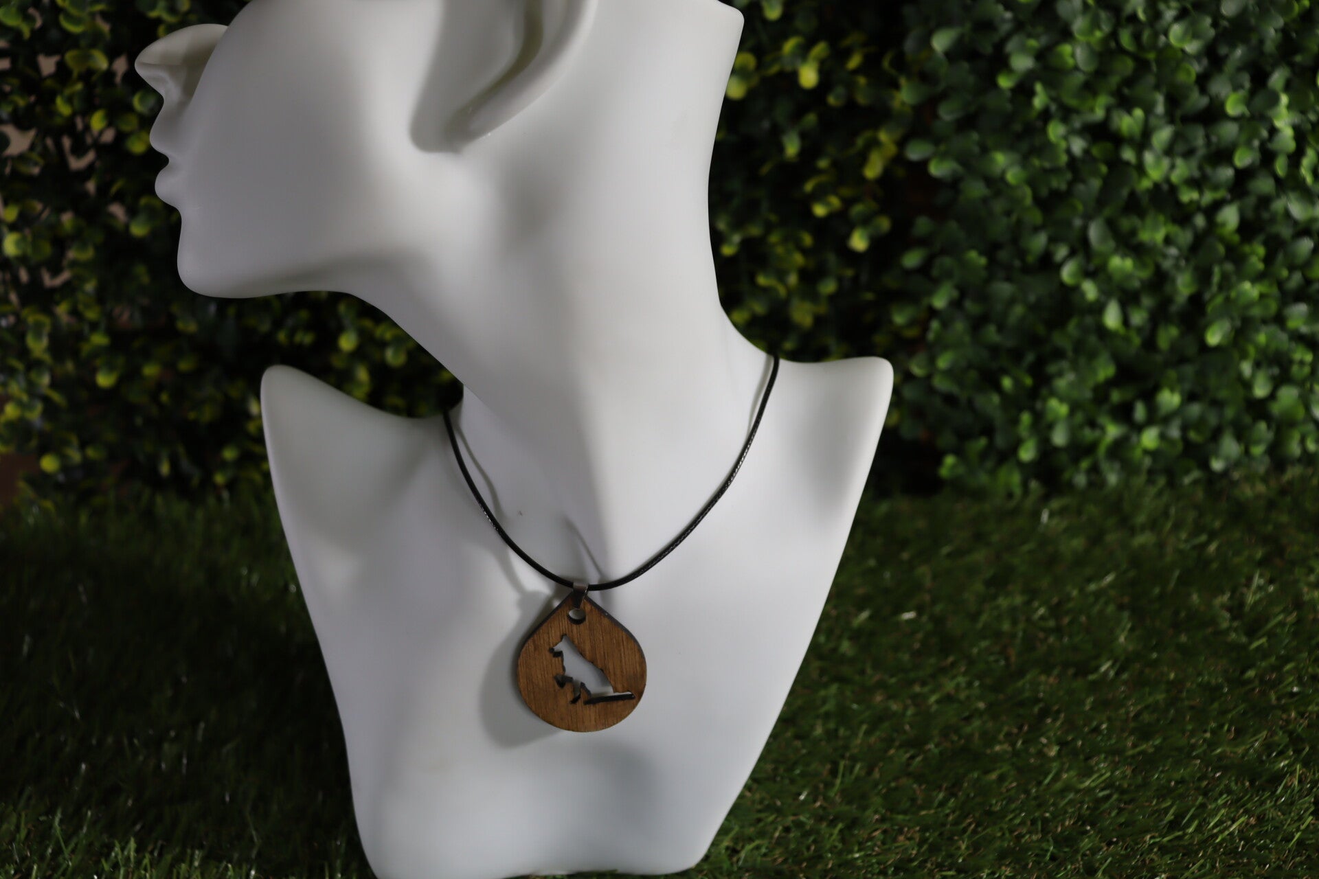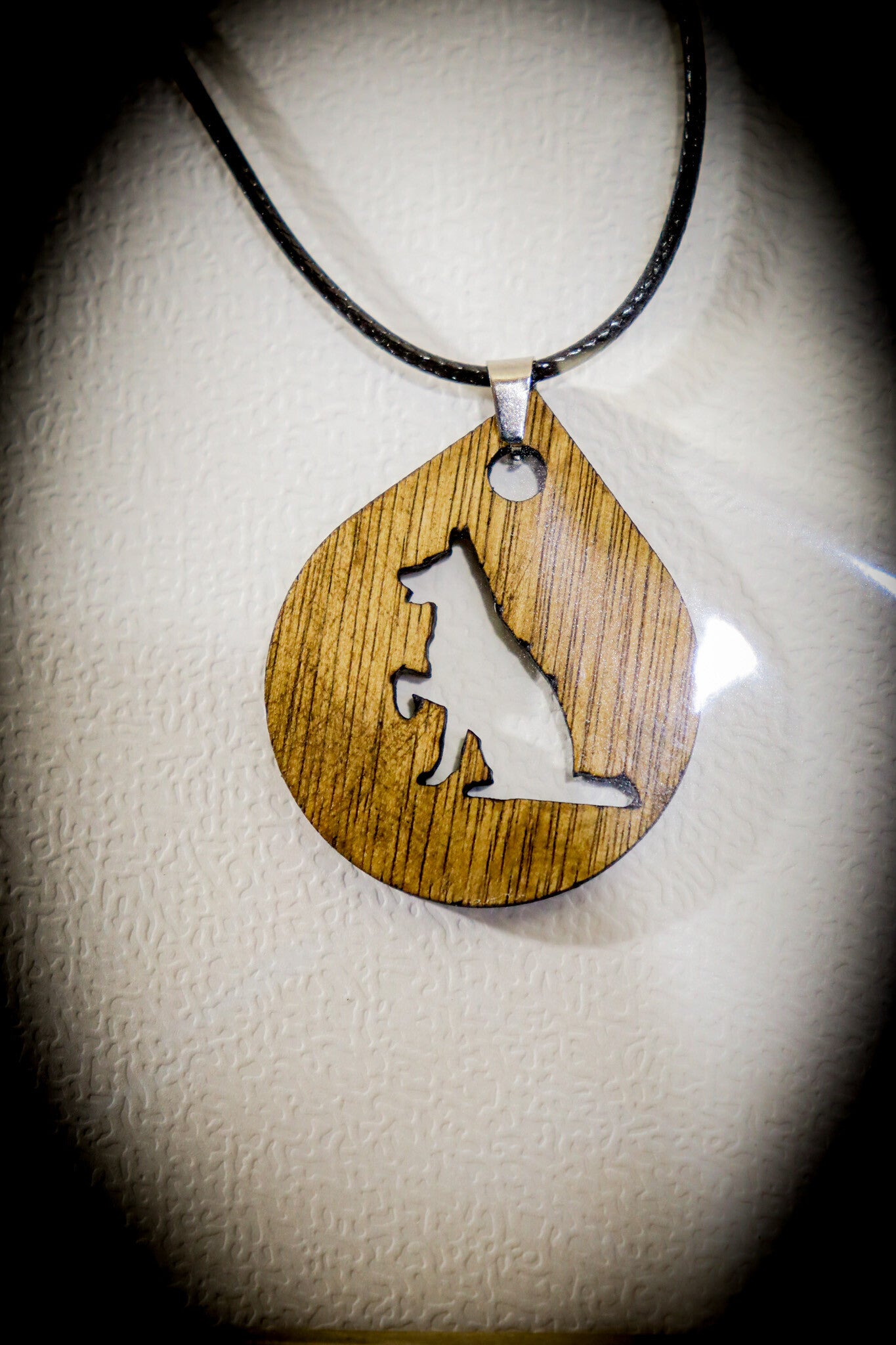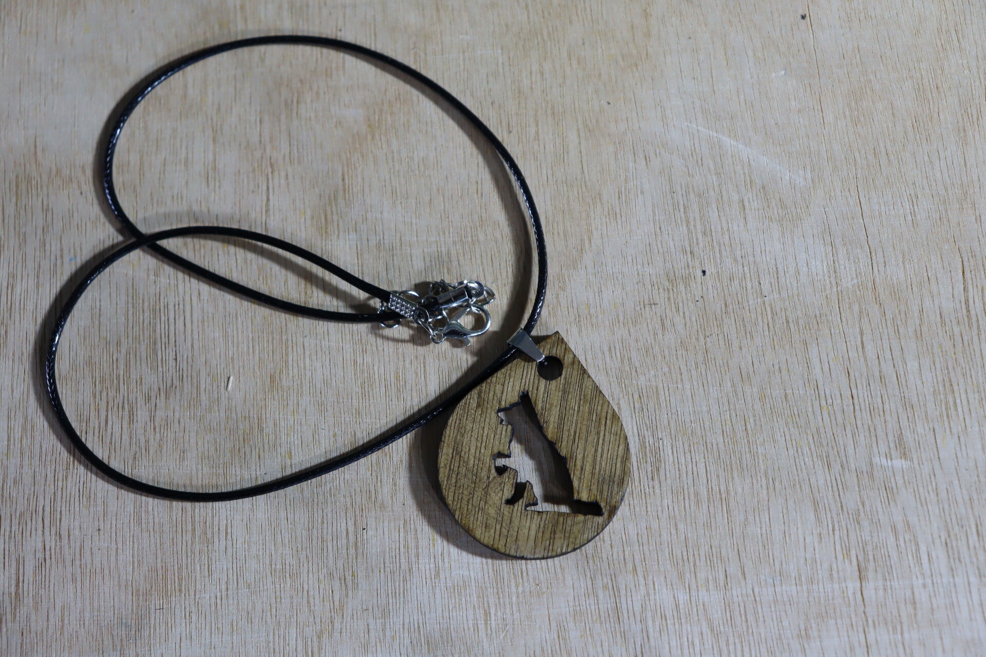 Halsketting met hond, lasergesneden houten hanger.