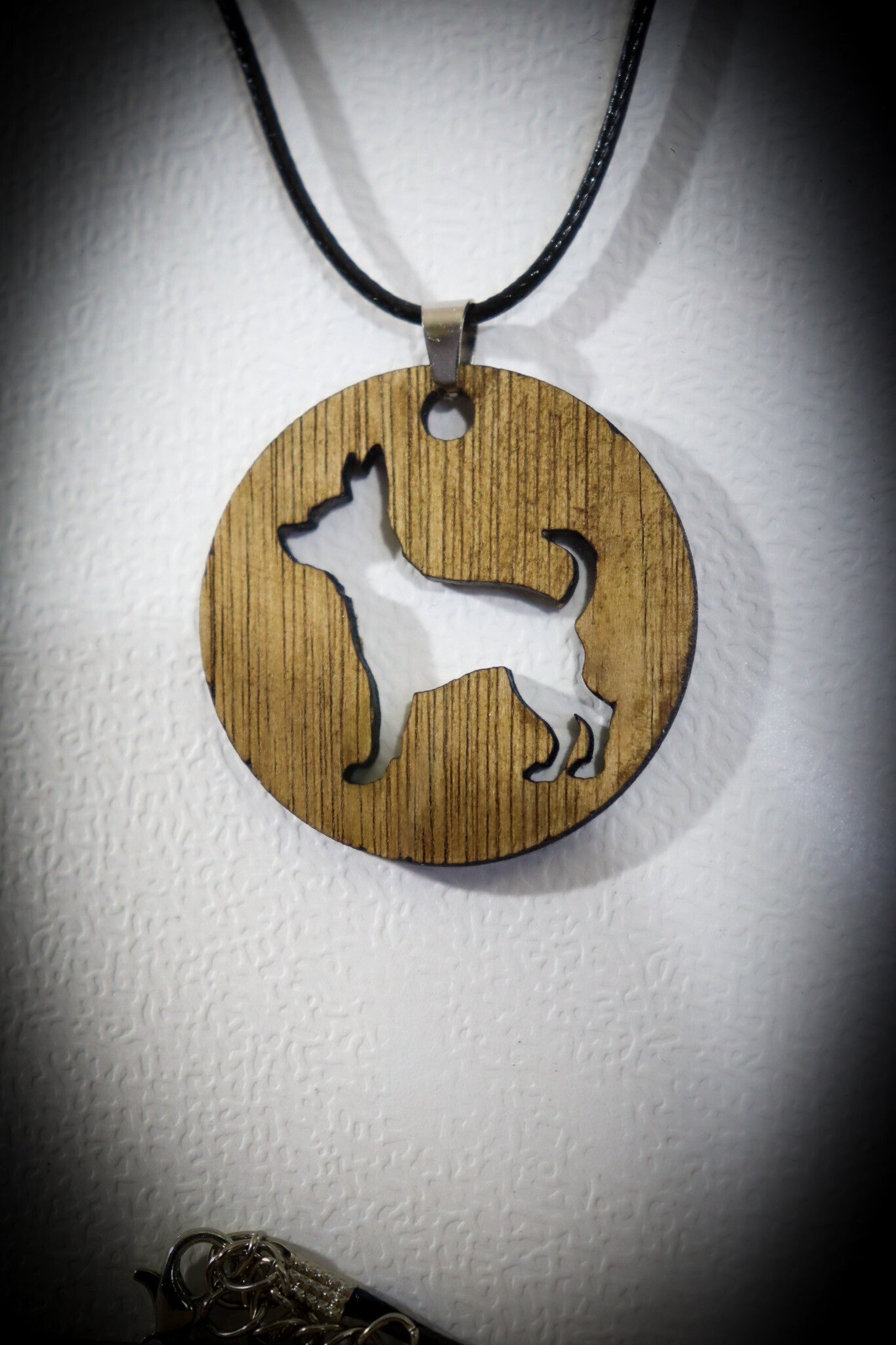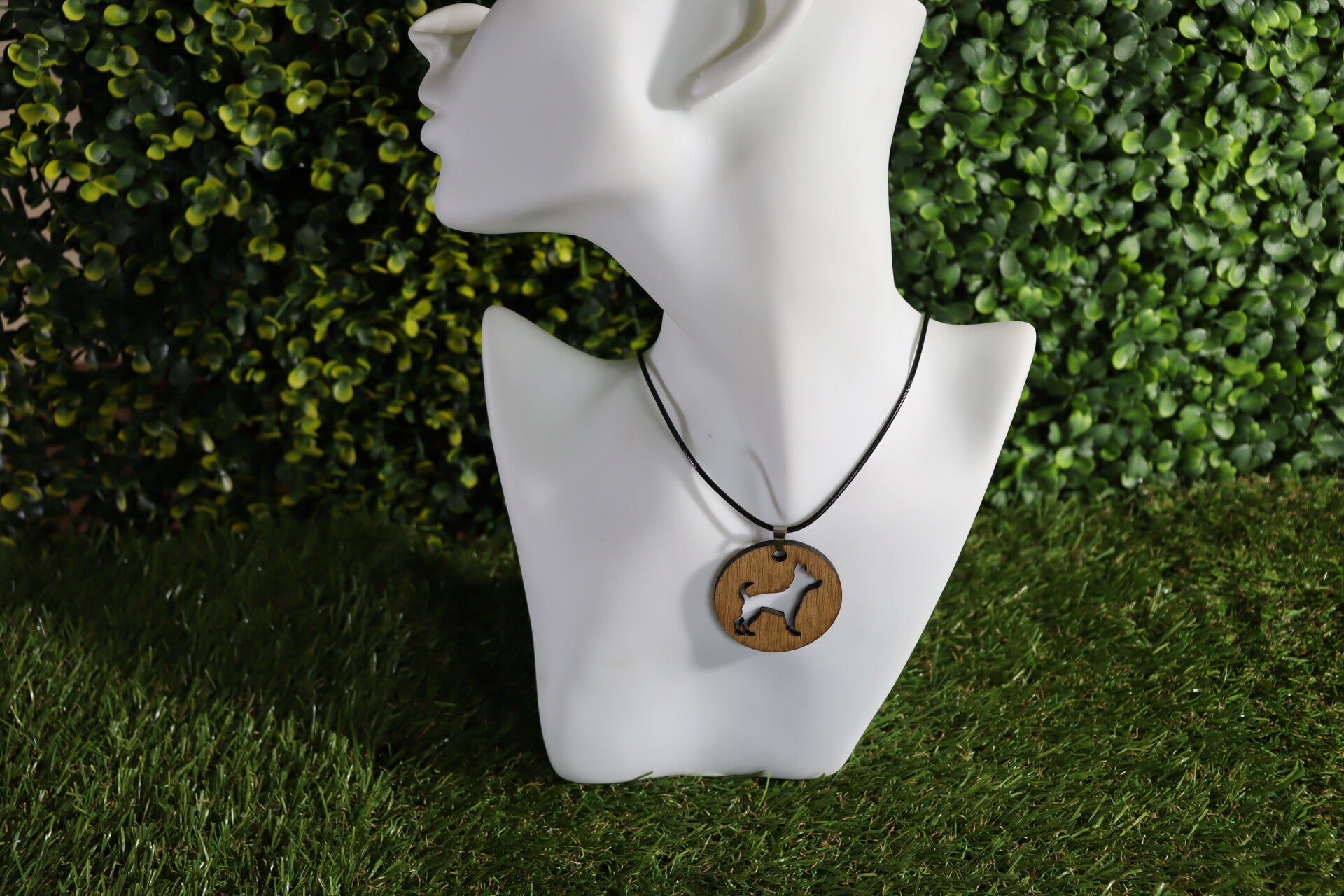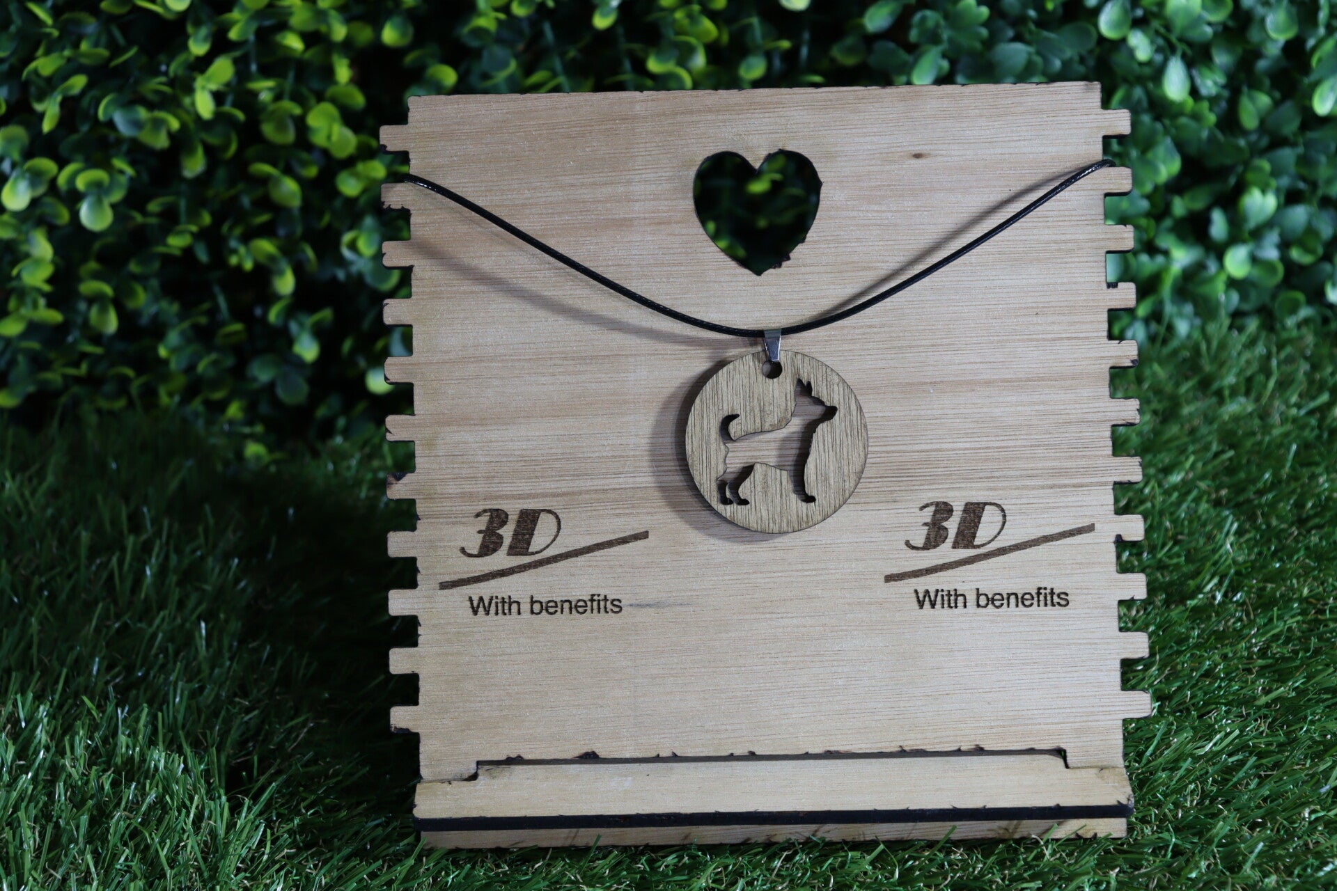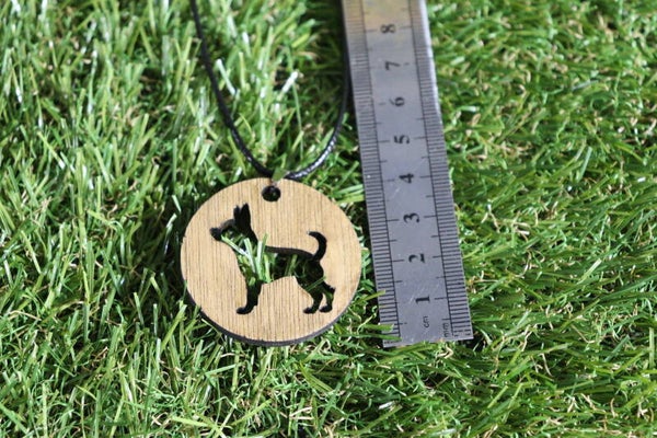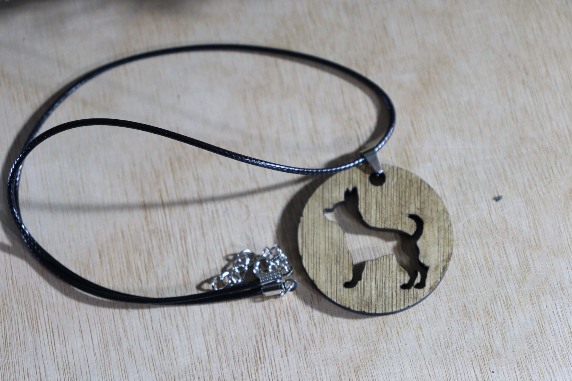Halsketting met lasergesneden houten hanger.