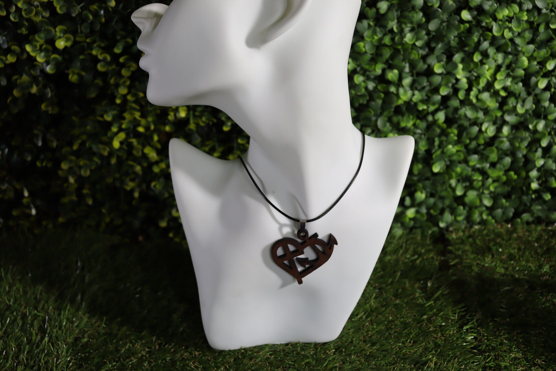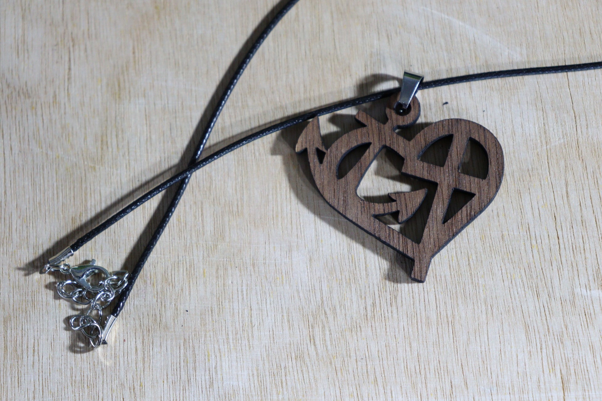 Halsketting met lasergesneden houten hanger.