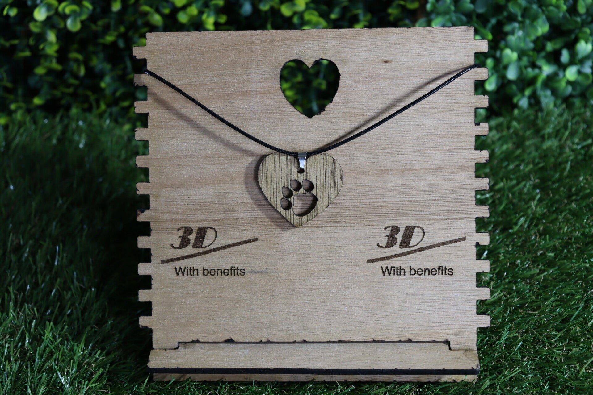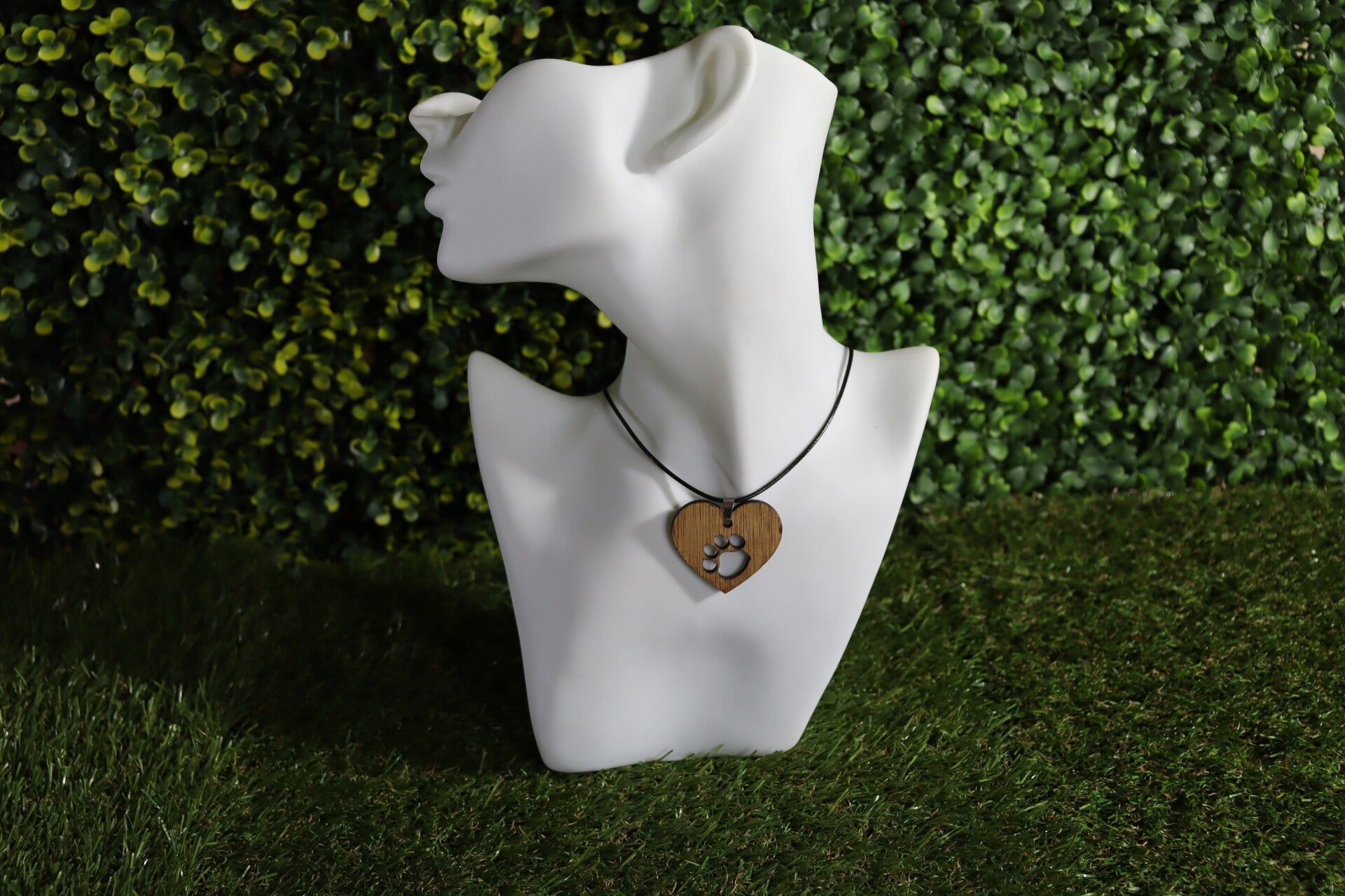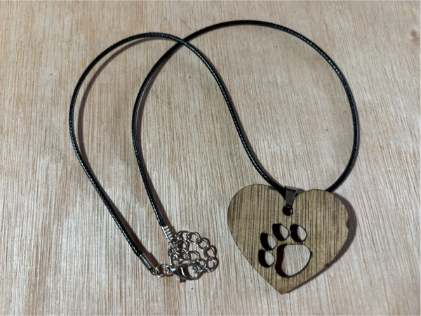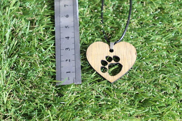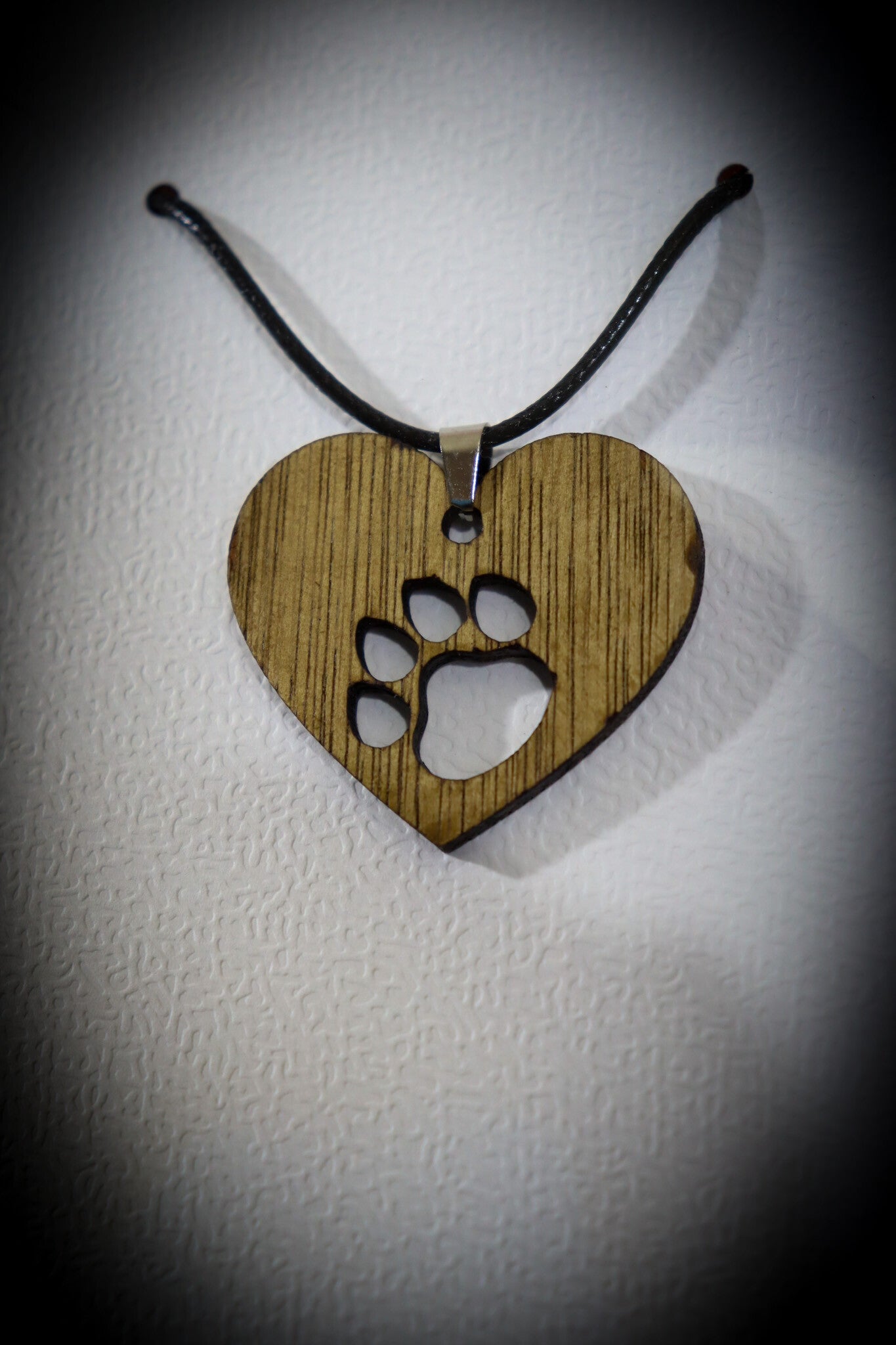 Halsketting met hondenpoot en hart, lasergesneden houten hanger.