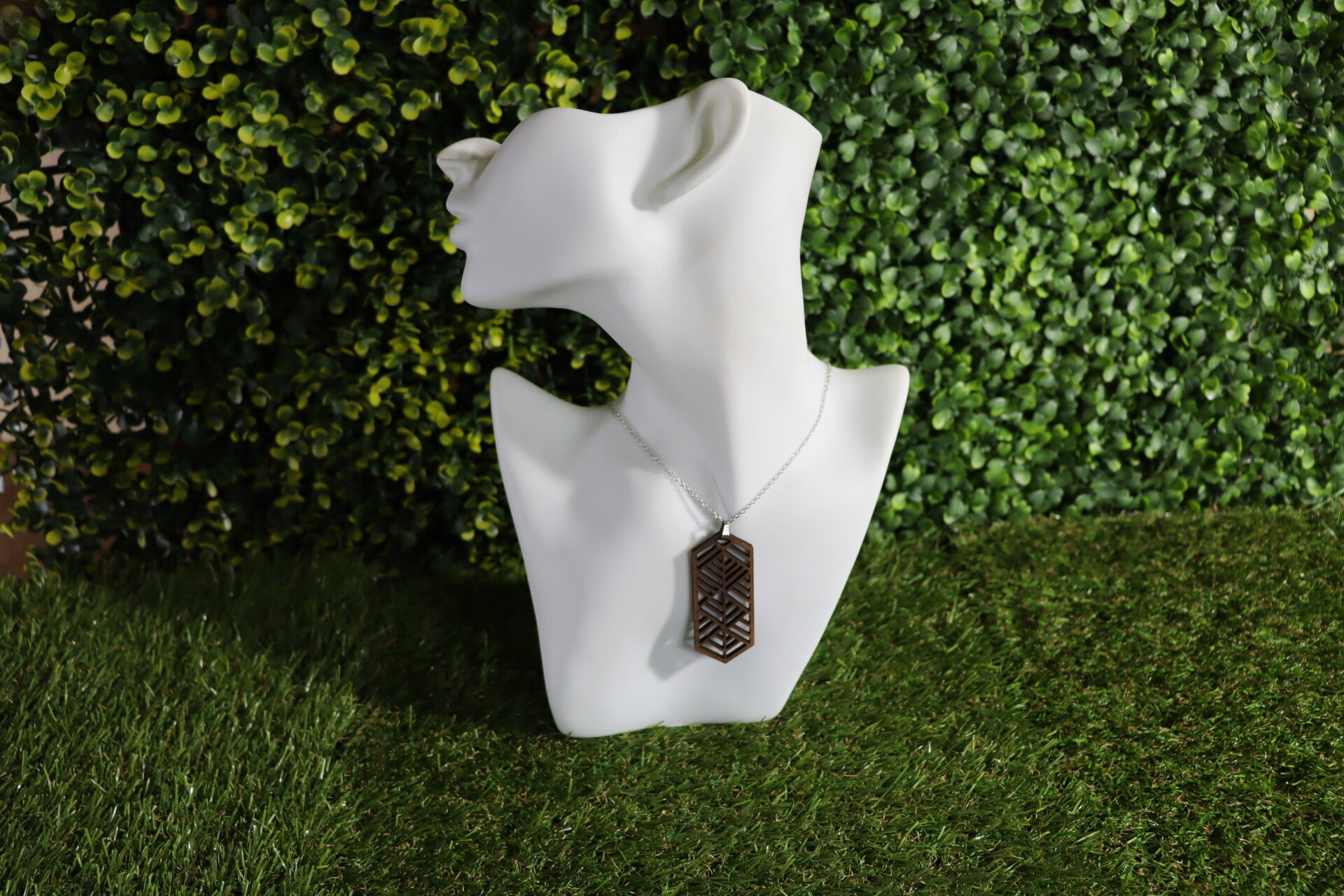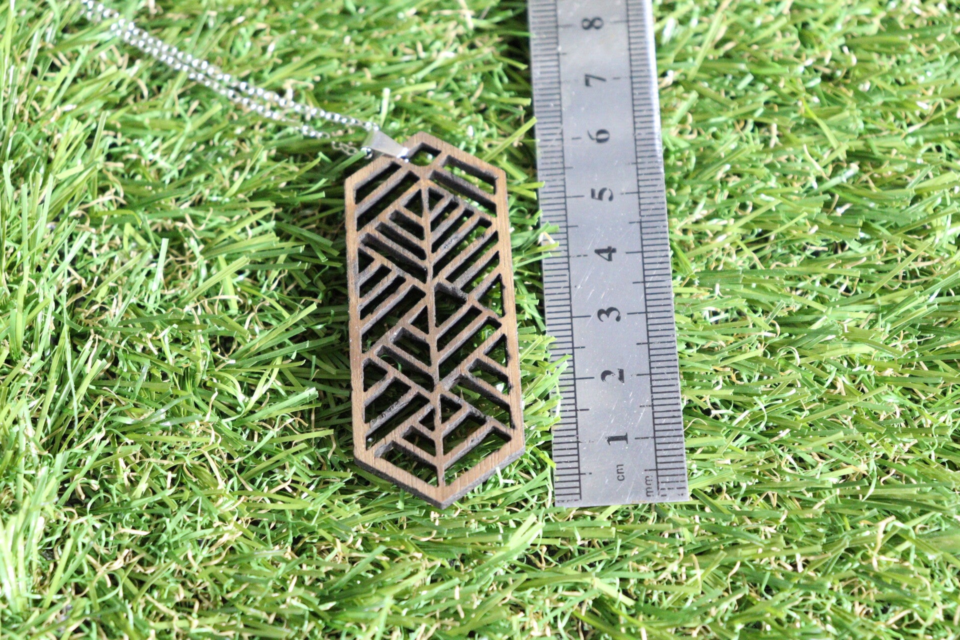 Halsketting met lasergesneden houten hanger.