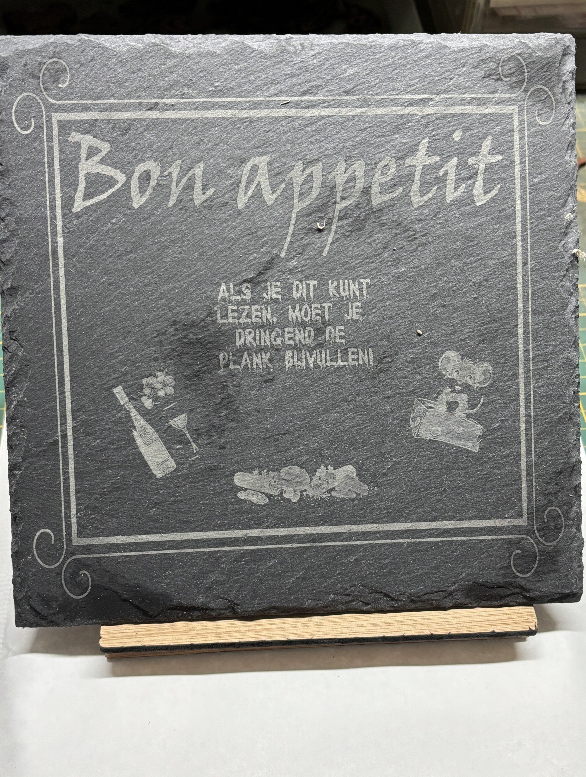 Leisteen onderzetter met eigen opdruk