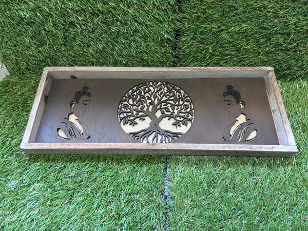 De inleg is in dit geval, Buddha met tree of life, donkerbruin gespoten.