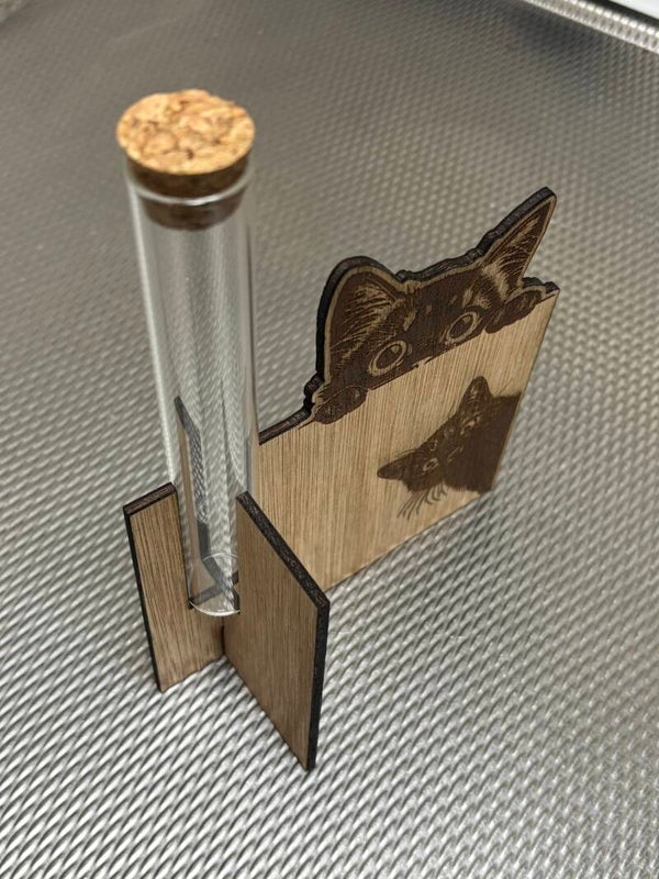 Mini vaas voorzien van reageerbuisje voor een klein boeketje of dat ene mooie bloemetje.