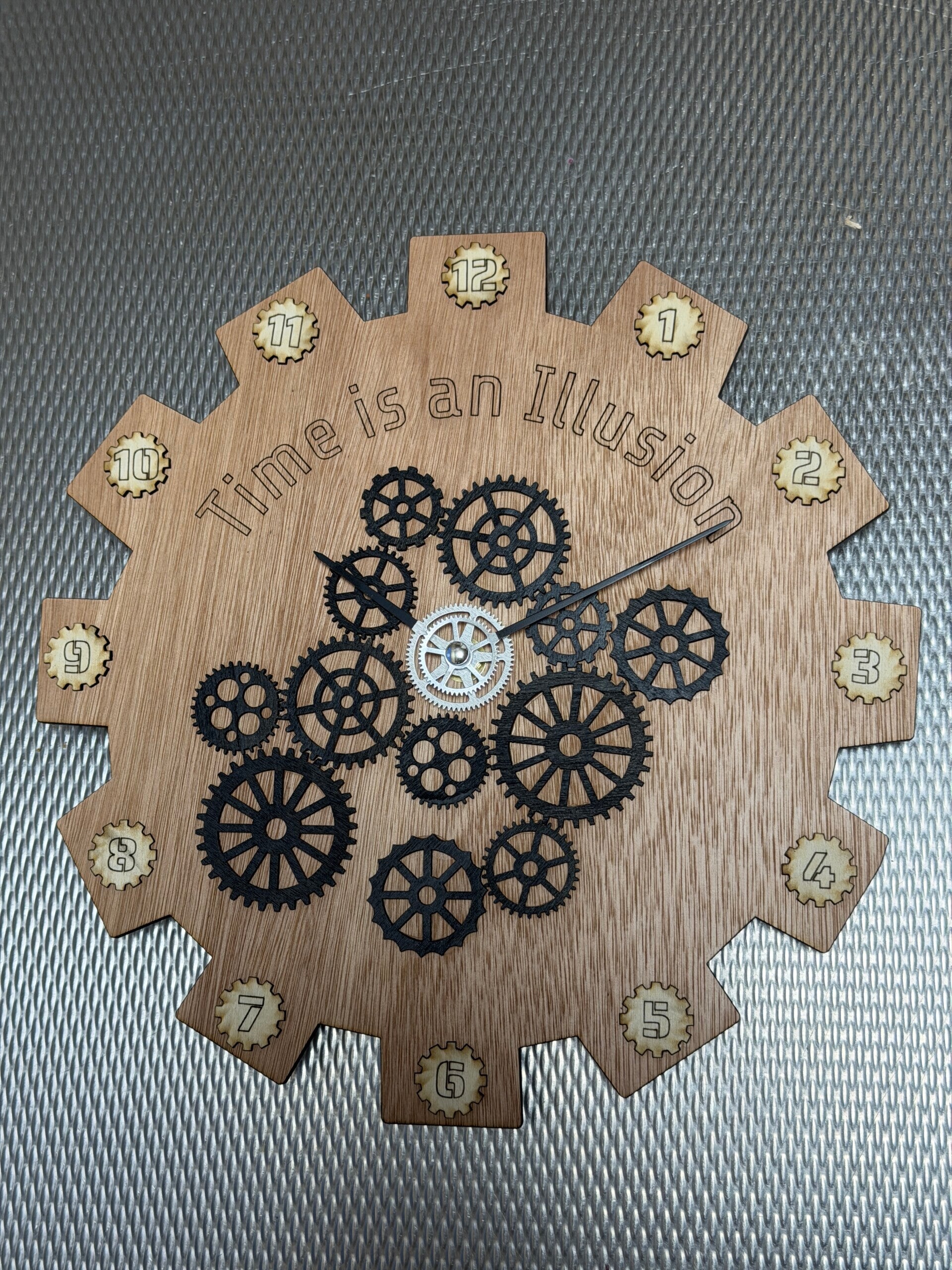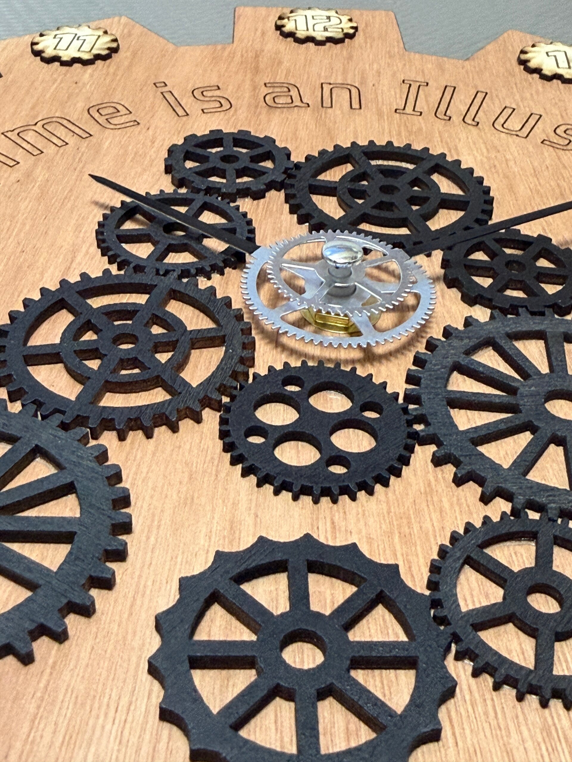 Unieke wandklok met tandwielen, 27cm doorsnede, voorzien van een stil uurwerk. Deze klok is uit eigen atelier in Rotterdam en gemaakt van FSC gekeurd hout. Een stijlvolle toevoeging aan elk interieur.